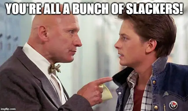 The 1990’s generation of twenty-somethings became known as the “Slacker Generation” by Boomers. Image courtesy of imgflip.com