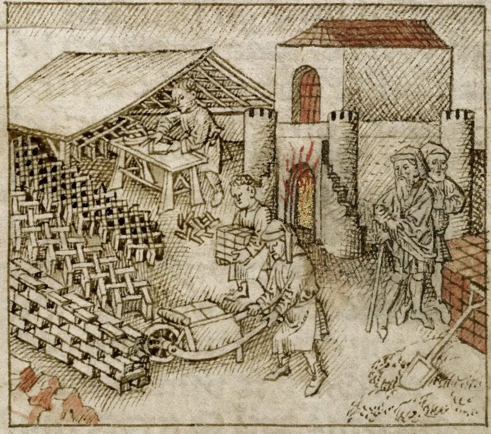 The image seen above shows a late Medieval brick making operation in England. Image courtesy of heritageopendays.org.uk