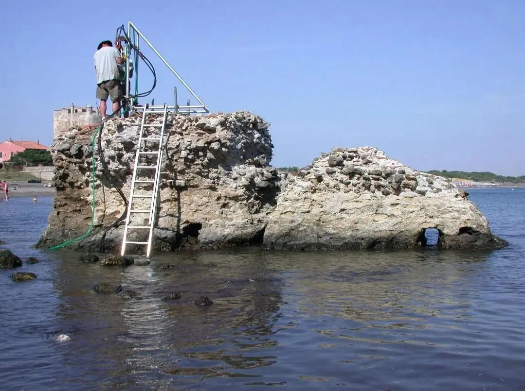 The image seen above shows the remnants of an old Roman sea pier in Orbitello, Italy. The dock that is seen above is called Portus Consanus. The photo seen above was taken in 2003. Image courtesy of riskfrontiers.com