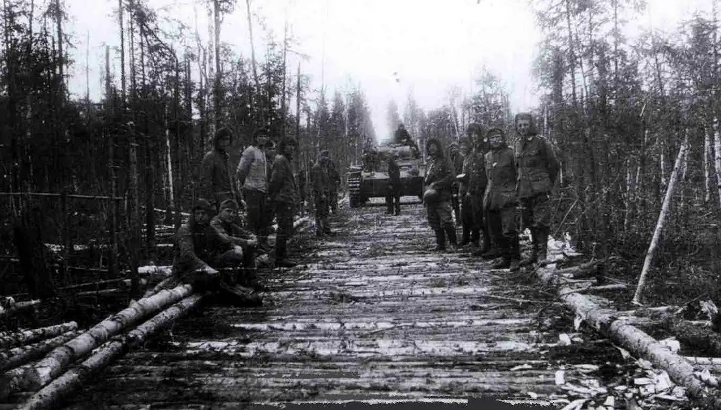 Image of a World War II corduroy road furnished courtesy of menofthewehrmacht.bogspot.com