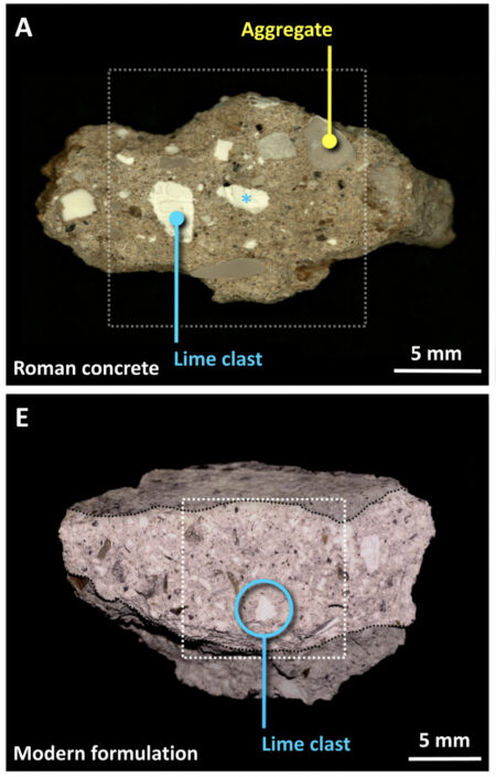 Image of an old Roman concrete chunk complete with quicklime pieces furnished courtesy of extremetech.com